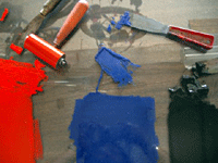 The artist prepares a tightly stretched screen of silk or nylon on a hinged
